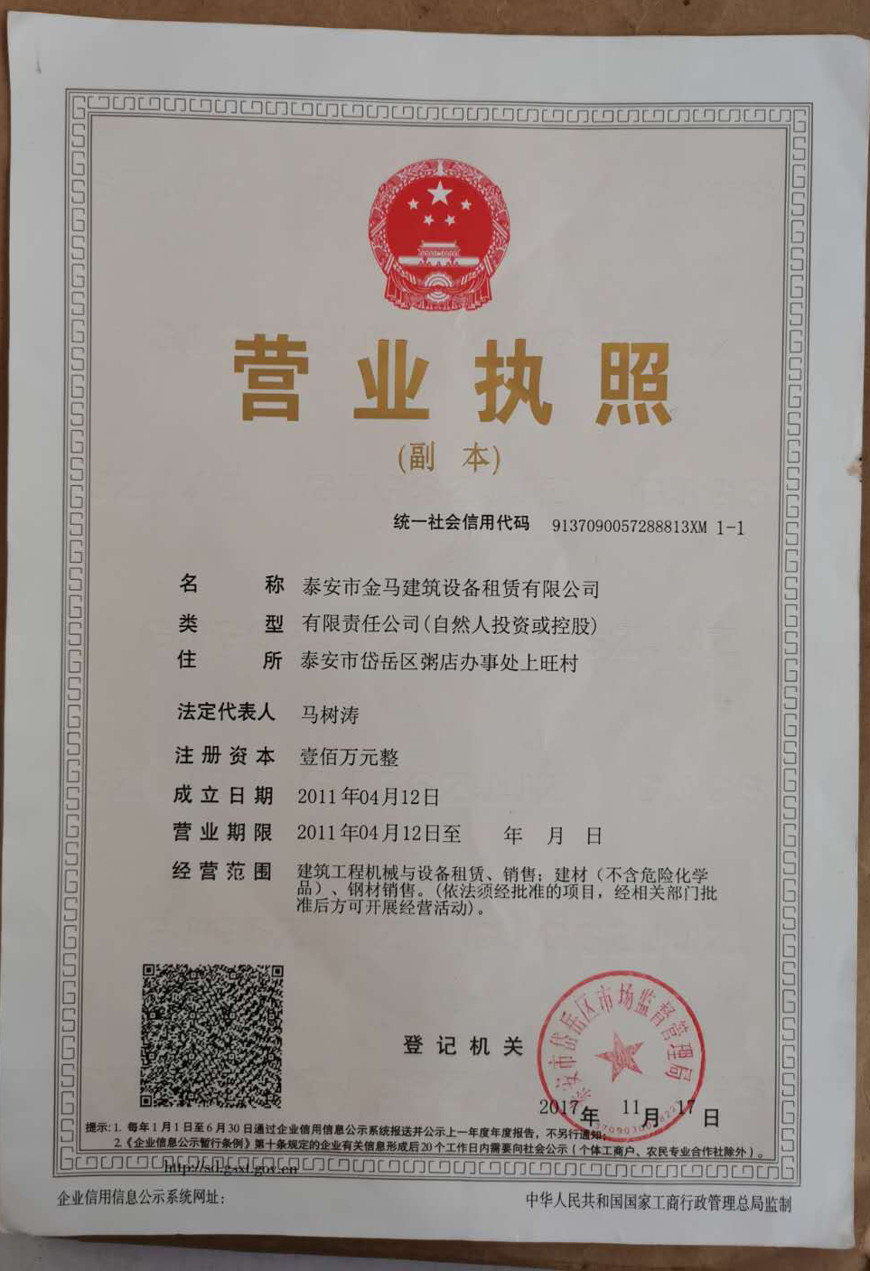 泰安市金馬建筑機械設備租賃有限公司